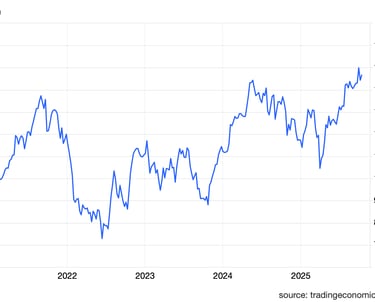 Ab 2022 begann die Europäische Zentralbank, in mehreren Schritten die Leitzinsen deutlich anzuheben (im Diagramm grün dargestellt). Für klassische Kreditbanken wie die Deutsche Bank bedeutete das einen enormen Schub bei den Zinserträgen. Der Markt reagierte zunächst zögerlich, doch mit zeitlichem Verzug zog die Aktie spürbar an. Wer hier antizyklisch dachte und frühzeitig auf die absehbare Zinswende setzte, konnte von einer starken Aufholbewegung profitieren. Ein klarer Beleg dafür, dass sich langfristiges Denken und das Handeln gegen den Mainstream lohnen können.