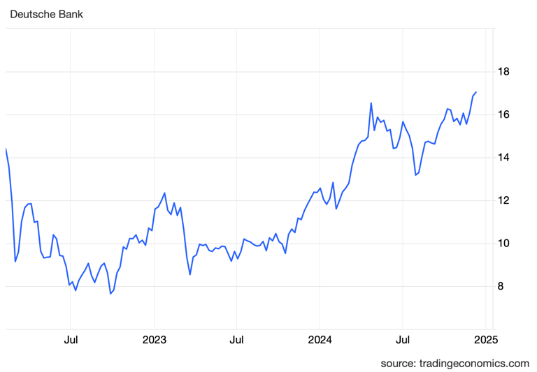 Die Leitzinserhöhung der Europäischen Zentralbank schuf ideale Bedingungen für Kreditbanken wie die Deutsche Bank. Mit einer soliden Zinsspanne, starker Eigenkapitalrendite und stabiler Kreditvergabe war sie bestens aufgestellt, um von der Hochzinsphase zu profitieren. Zudem wies die Aktie eine niedrige Bewertung auf und galt somit als "überverkauft",