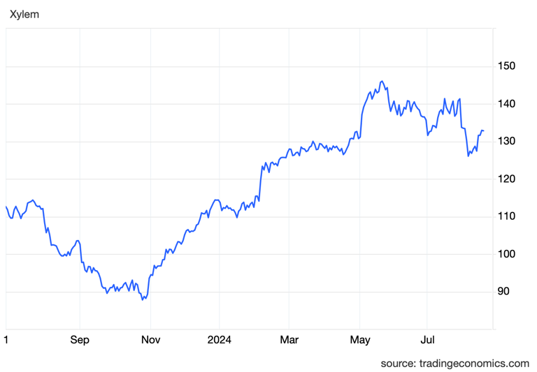 Die Aktie des Wassertechnologieunternehmens Xylem notierte im Herbst/Winter ungewöhnlich niedrig, obwohl die Bilanz und die generellen Geschäftszahlen äußerst solide waren. Zudem wurde erwartet, dass die Nachfrage nach Trinkwasseraufbereitungsanlagen und anderen Technologien zur Wasserversorgung im Frühjahr und Sommer anziehen würde, was für volle Auftragsbücher sorgte. Auch aus technischer Sicht deutete sich ein klarer Aufwärtstrend an. Die Kombination aus fundamentalen Stärken und einer günstigen Marktlage führte zu einem deutlichen Kursanstieg. Im März/April 2024 konnte die Position mit einem Gewinn von rund 50 % erfolgreich geschlossen werden – ein präziser und gut geplanter Trade im Bereich nachhaltiger Technologien.