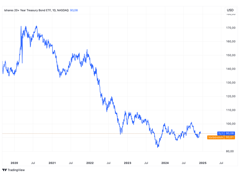 Zu Beginn des Jahres 2024 schien der TLT ETF – ein Fonds, der auf langfristige US-Staatsanleihen setzt – eine vielversprechende Gelegenheit. Die Erwartung, dass die US-Notenbank (Fed) bald die Leitzinsen senken würde, hätte den Anleihemarkt belebt, da Investoren sich hohe Renditen sichern wollen, bevor die Zinsen fallen.